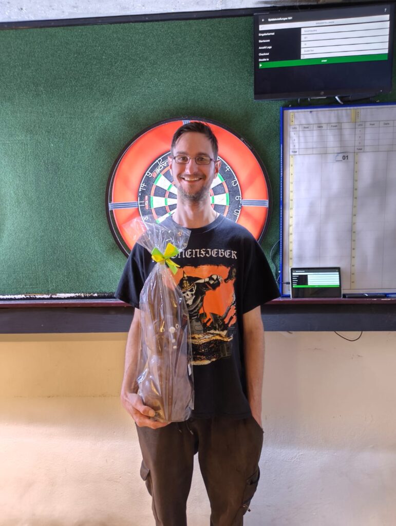 Am 2. April veranstaltete der DCB wieder das Turnier „Easter Bunny“. Gespielt wurde im Einzel mit Knockout-Modus. Die Spielregeln lauteten 301 Double-in, Double-out. Es warteten nicht nur Preise auf alle Teilnehmer, sondern es wurde auch feines Raclette serviert. Rund 20 Teilnehmer spielten mit, und am Ende holte sich Joel Gloor den Sieg. Wir gratulieren!